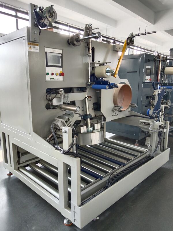 권취 패키지가 원하는 둘레에 도달하면 통합 와인더로 필름으로 감싸고 통합 운송 시스템으로 와인더에서 아래 롤러 컨베이어로 기울입니다. 동시에 새 권취 튜브가 매거진에서 공급되고 다음 패키지가 완전히 자동으로 감깁니다.